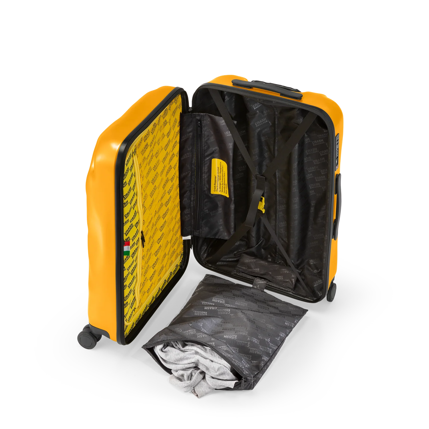 Crash Baggage är ett italienskt designvarumärke grundat 2013 av Francesco Pavia i Venedig. Varumärket har gjort sig känt världen över för sina ikoniska resväskor med avsiktliga bucklor och repor – en designfilosofi som utmanar traditionella ideal om perfekta ytor. Genom sin unika ”pre-damaged”-stil vill Crash Baggage eliminera rädslan för att en ny väska ska förstöras under resan.
