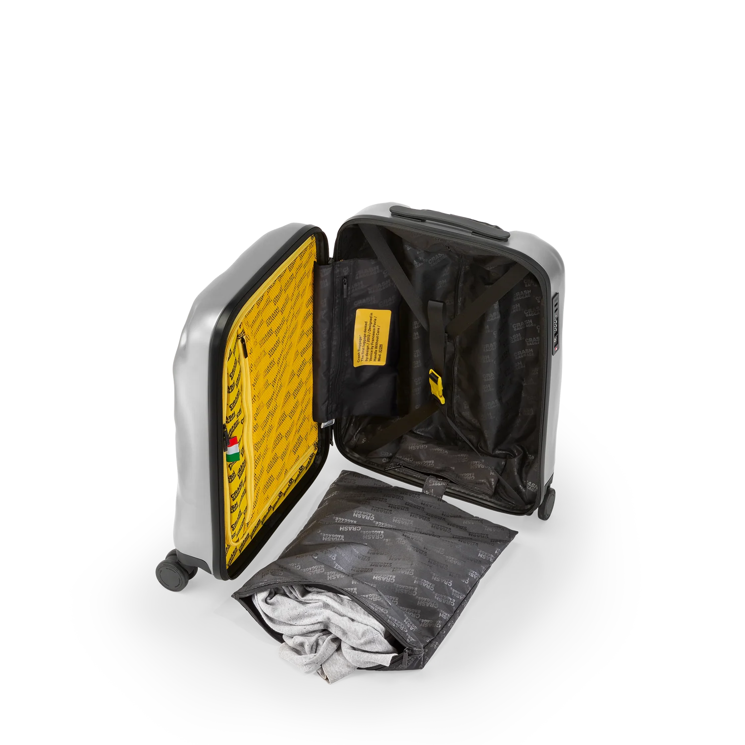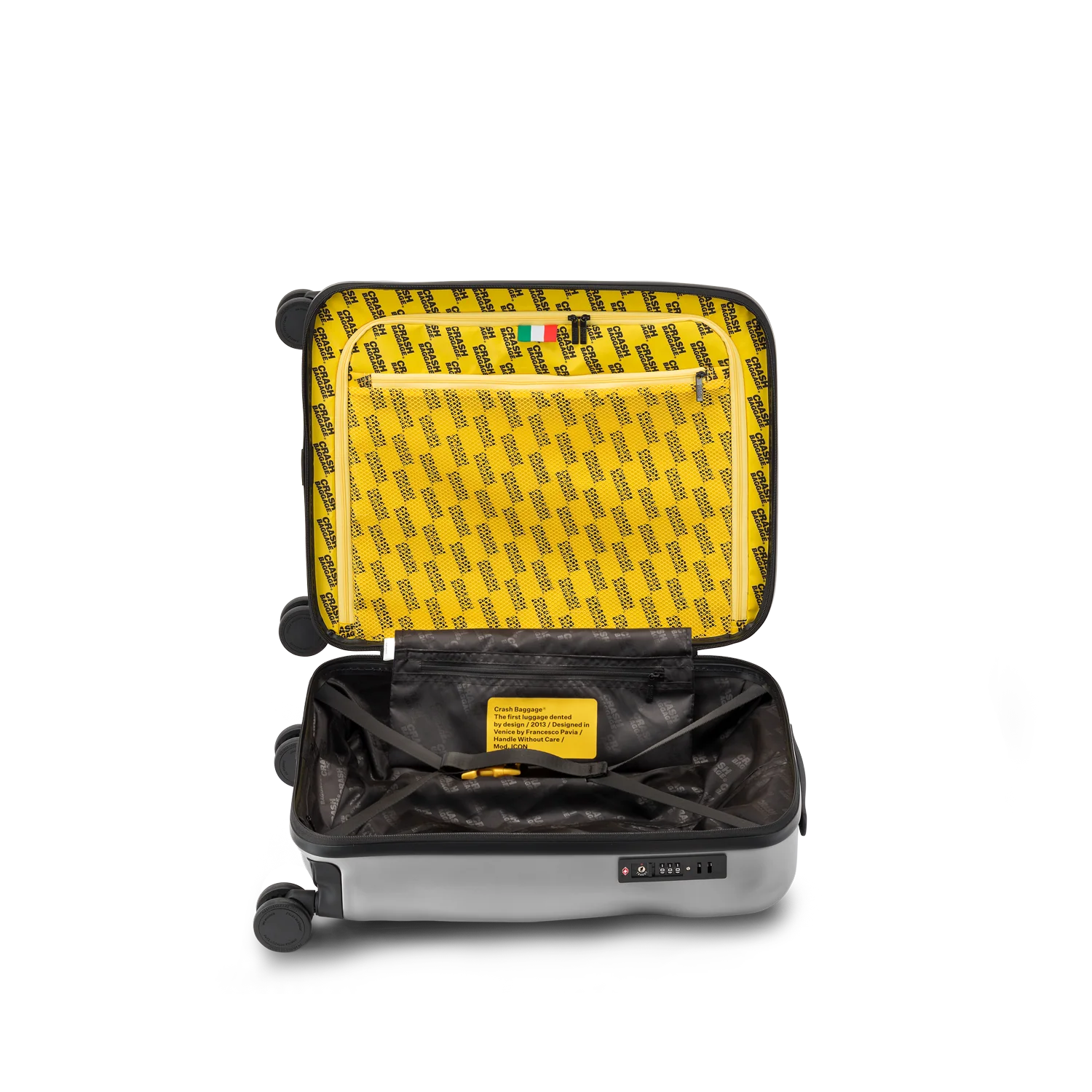 Crash Baggage är ett italienskt designvarumärke grundat 2013 av Francesco Pavia i Venedig. Varumärket har gjort sig känt världen över för sina ikoniska resväskor med avsiktliga bucklor och repor – en designfilosofi som utmanar traditionella ideal om perfekta ytor. Genom sin unika ”pre-damaged”-stil vill Crash Baggage eliminera rädslan för att en ny väska ska förstöras under resan.