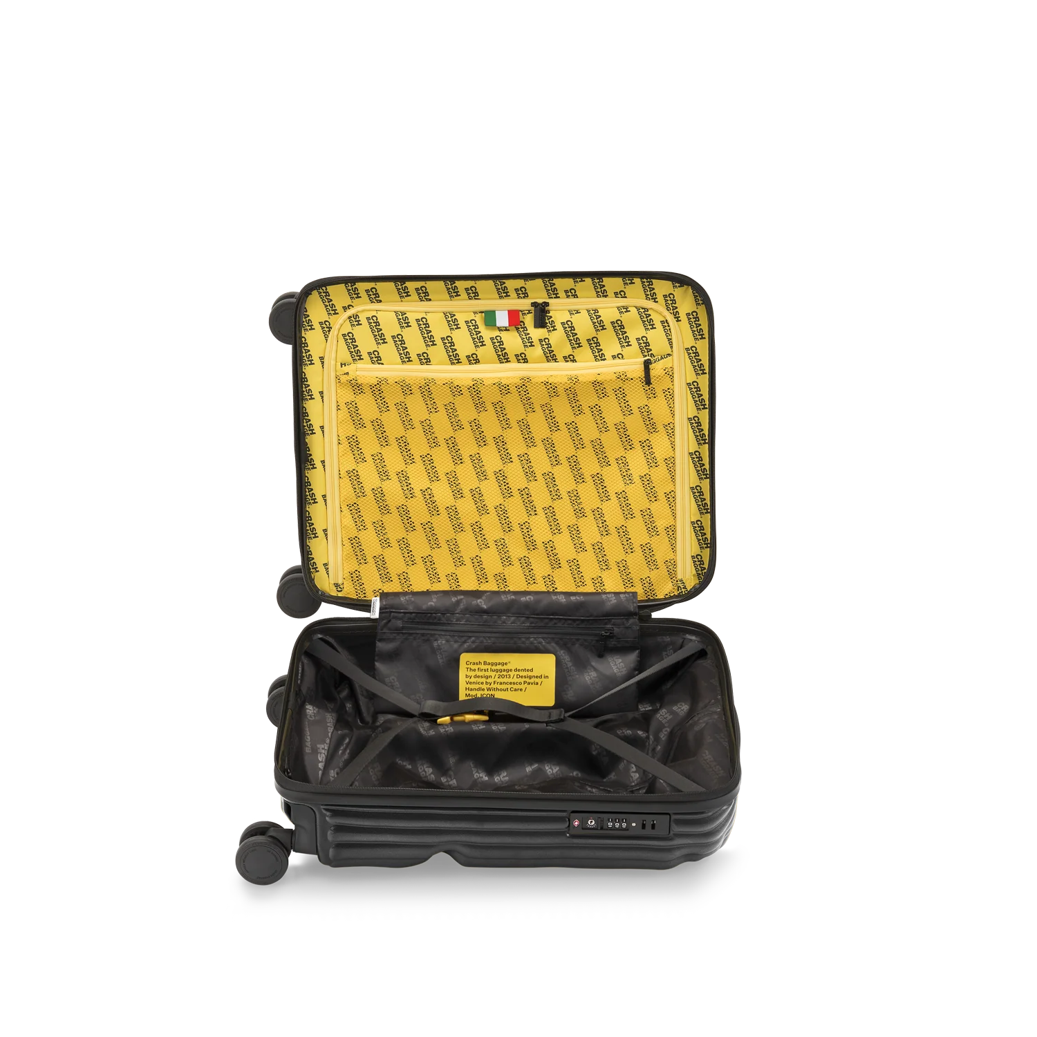 Crash Baggage är ett italienskt designvarumärke grundat 2013 av Francesco Pavia i Venedig. Varumärket har gjort sig känt världen över för sina ikoniska resväskor med avsiktliga bucklor och repor – en designfilosofi som utmanar traditionella ideal om perfekta ytor. Genom sin unika ”pre-damaged”-stil vill Crash Baggage eliminera rädslan för att en ny väska ska förstöras under resan.