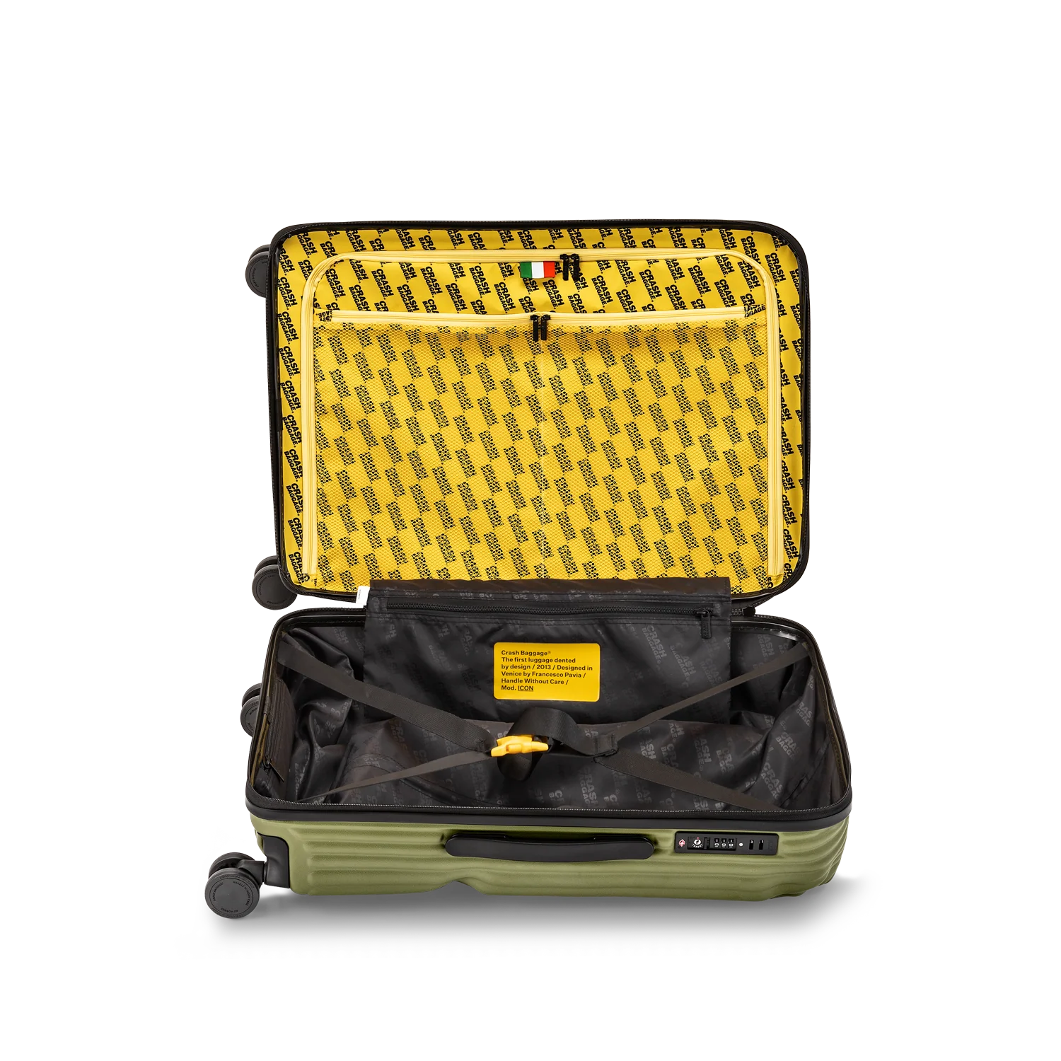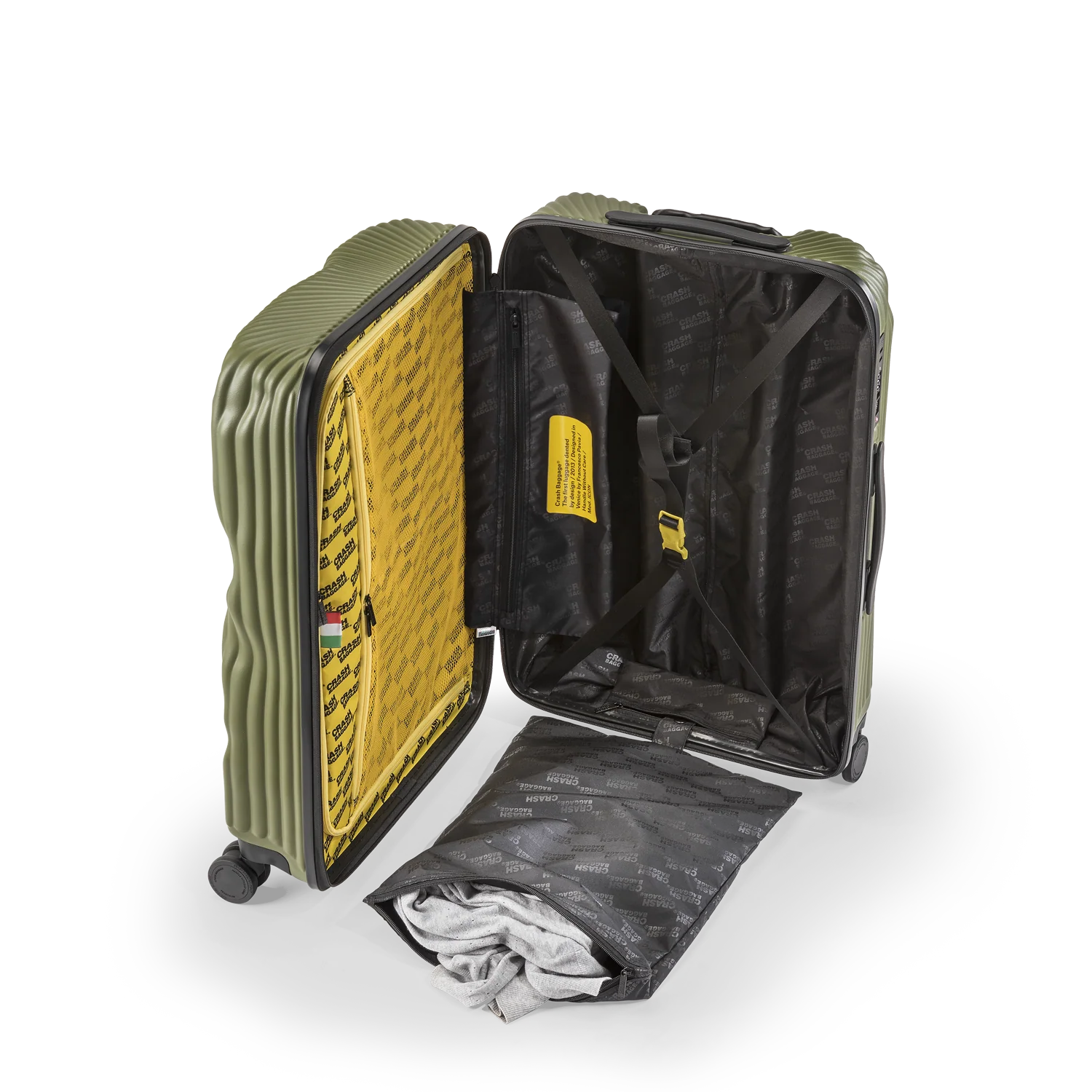 Crash Baggage är ett italienskt designvarumärke grundat 2013 av Francesco Pavia i Venedig. Varumärket har gjort sig känt världen över för sina ikoniska resväskor med avsiktliga bucklor och repor – en designfilosofi som utmanar traditionella ideal om perfekta ytor. Genom sin unika ”pre-damaged”-stil vill Crash Baggage eliminera rädslan för att en ny väska ska förstöras under resan.