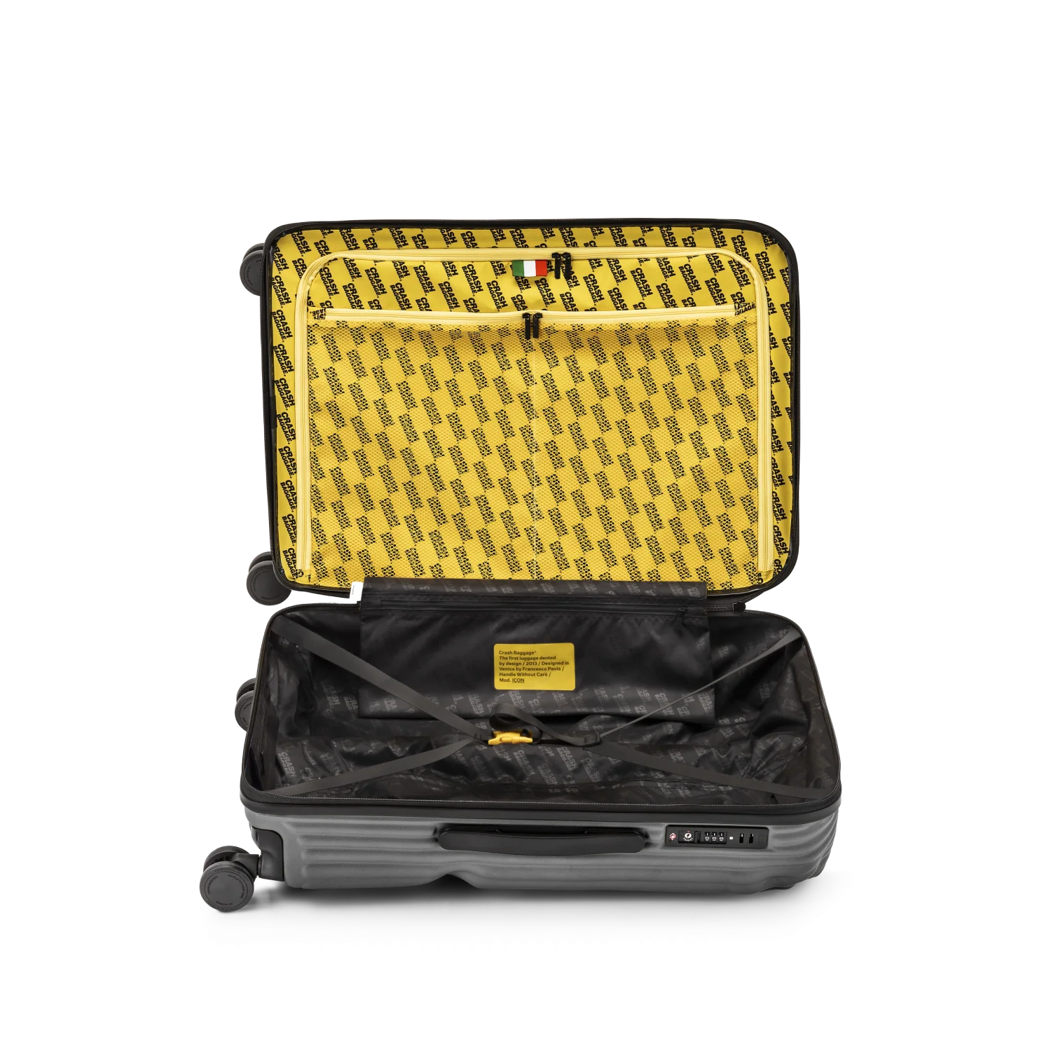 Crash Baggage är ett italienskt designvarumärke grundat 2013 av Francesco Pavia i Venedig. Varumärket har gjort sig känt världen över för sina ikoniska resväskor med avsiktliga bucklor och repor – en designfilosofi som utmanar traditionella ideal om perfekta ytor. Genom sin unika ”pre-damaged”-stil vill Crash Baggage eliminera rädslan för att en ny väska ska förstöras under resan.